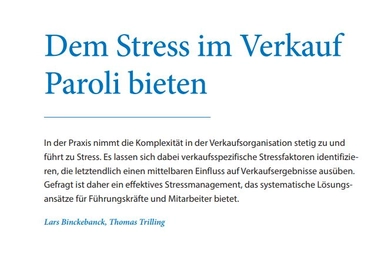 Dem Stress im Verkauf Paroli bieten – Sales Management Review Vertriebsmitarbeiter aller Branchen, Unternehmensgrößen und Hierarchieebenen befinden sich in einem permanenten Spannungsfeld. Kunden auf der einen Seite, Kollegen Weiter Lesen