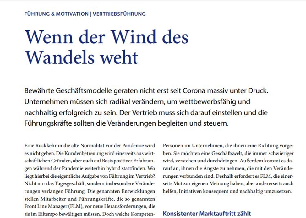 Hier der Link zu dem Sales Excellence Artikel - Wenn der Wind des Wandels weht