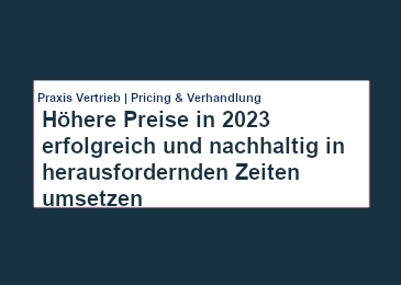 Mercuri Artikel – Höhere Preise in 2023 erfolgreich umsetzen Marktverhältnisse haben sich radikal verändert: Im Jahr 2023 höhere Preise (erneut!) erfolgreich durchzusetzen, ist leichter gesagt als getan. Weiter Lesen